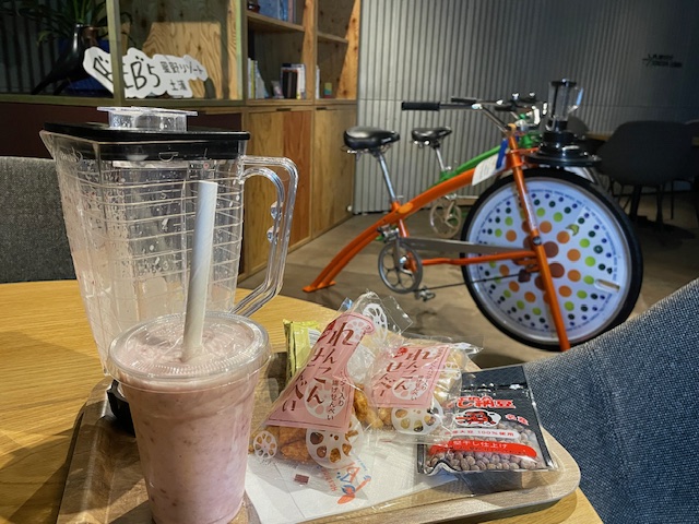 24時間使える「TAMARIBA」では自分でペダルを漕いでスムージーを作って飲むバイクがあり、楽しみながら自由にくつろぐことができるようになっています。レンタル自転車も3車種あり、チェックイン前でも自転車を借りてサイクリングを楽しむことができます。
